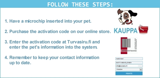 All pets with microchips are welcome to sign up for the Turvasiru service, regardless of their ancestry or breed. Pets with any type of a microchip can be enrolled into the Turvasiru service.